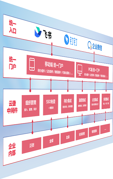 对协作平台提供支持服务,,,支持企业应用与协作平台对接,,,包含组织同步、、、消息集成、、、待办集成等。。支持目前主流的协作平台:钉钉、、、、企微和飞书。。。。